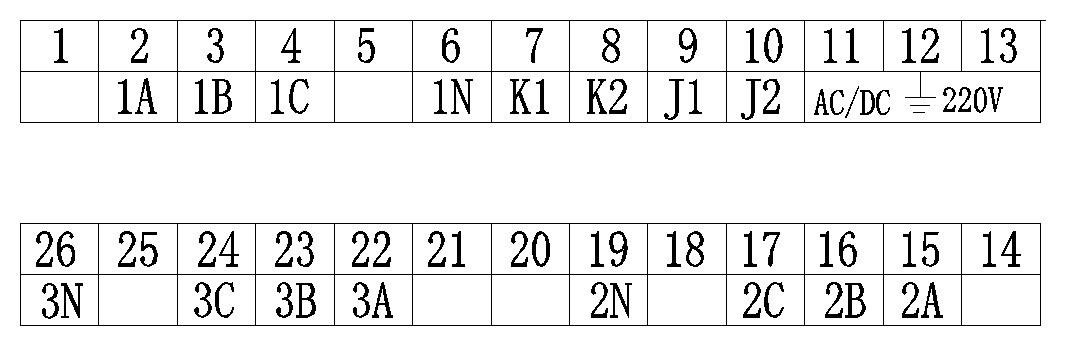 將單相調(diào)壓器調(diào)到0V位置,輸出端接到某繞組與相應(yīng)的N端(如1A與1N),接通保護器的AC220V電源,此時,面板上的工作指示燈(綠色)每隔一秒閃爍一次,而其它的指示燈均應(yīng)不亮,這表示各路保護電路均處于正常的復(fù)位狀態(tài)。假如有通道紅色指示燈亮,說明相應(yīng)部分保護狀態(tài)未正常復(fù)位,需要按復(fù)位按鈕予以復(fù)位。之后,檢測動作電壓是否正常,方法是:緩慢地調(diào)節(jié)調(diào)壓器,使調(diào)壓器輸出電壓逐漸升高,當(dāng)燈泡亮?xí)r,此刻調(diào)壓器輸出電壓數(shù)值即為保護動作啟動電壓。之后降低調(diào)壓器的輸出電壓,燈泡也不會熄滅,這說明保持功能正常。 依此方法分別檢測所有各路繞組,如果均符合技術(shù)指標(biāo),則檢測合格。四、訂貨須知