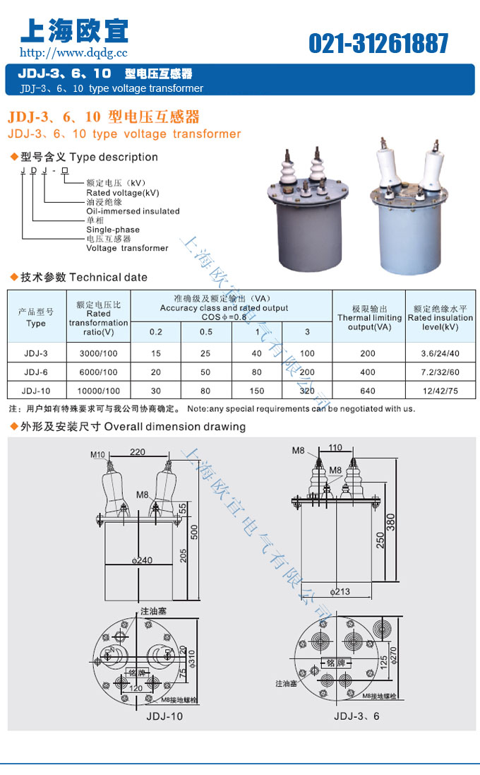 聲明:這里是產(chǎn)品的接線圖、變比、參數(shù)、精度、準(zhǔn)確級、保護(hù)級、作用原理、外形尺寸等詳細(xì)參數(shù)頁面。本頁JDJ-10電壓互感器的信息僅供參考,如有改動不另行通知。訂購前請來電咨詢,我們有專業(yè)人士為您選型。 另外可根據(jù)客戶需求,訂制非標(biāo)產(chǎn)品。