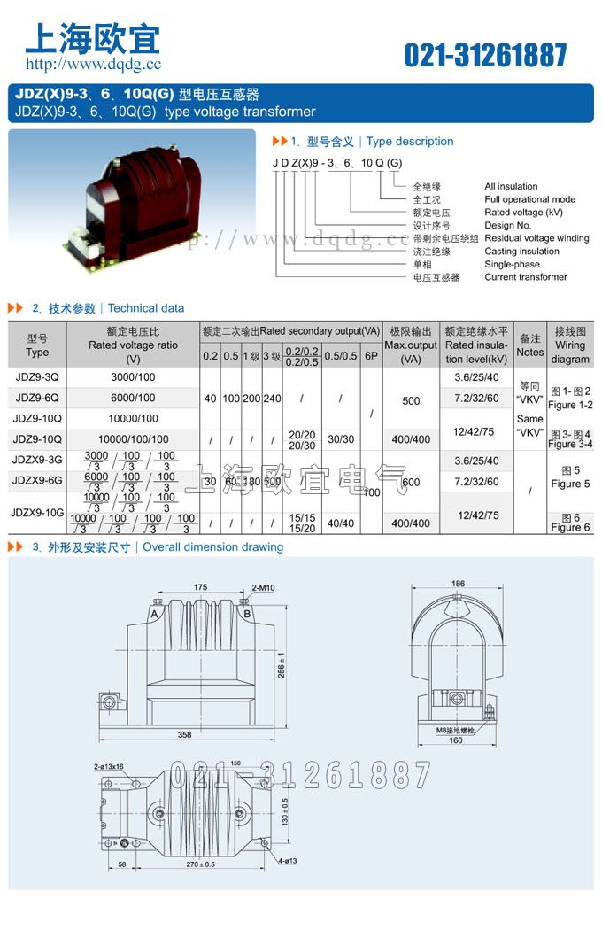 聲明:這里是產(chǎn)品的接線圖、變比、參數(shù)、精度、準(zhǔn)確級(jí)、保護(hù)級(jí)、作用原理、外形尺寸等詳細(xì)參數(shù)頁(yè)面。本頁(yè)JDZ9-10Q電壓互感器的信息僅供參考,如有改動(dòng)不另行通知。訂購(gòu)前請(qǐng)來(lái)電咨詢,我們有專業(yè)人士為您選型。 另外可根據(jù)客戶需求,訂制非標(biāo)產(chǎn)品。