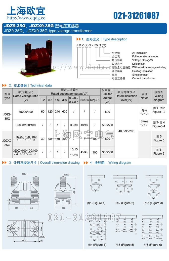 聲明:這里是產(chǎn)品的接線圖、變比、參數(shù)、精度、準(zhǔn)確級(jí)、保護(hù)級(jí)、作用原理、外形尺寸等詳細(xì)參數(shù)頁(yè)面。本頁(yè)JDZX9-35G電壓互感器的信息僅供參考,如有改動(dòng)不另行通知。訂購(gòu)前請(qǐng)來(lái)電咨詢,我們有專業(yè)人士為您選型。 另外可根據(jù)客戶需求,訂制非標(biāo)產(chǎn)品。