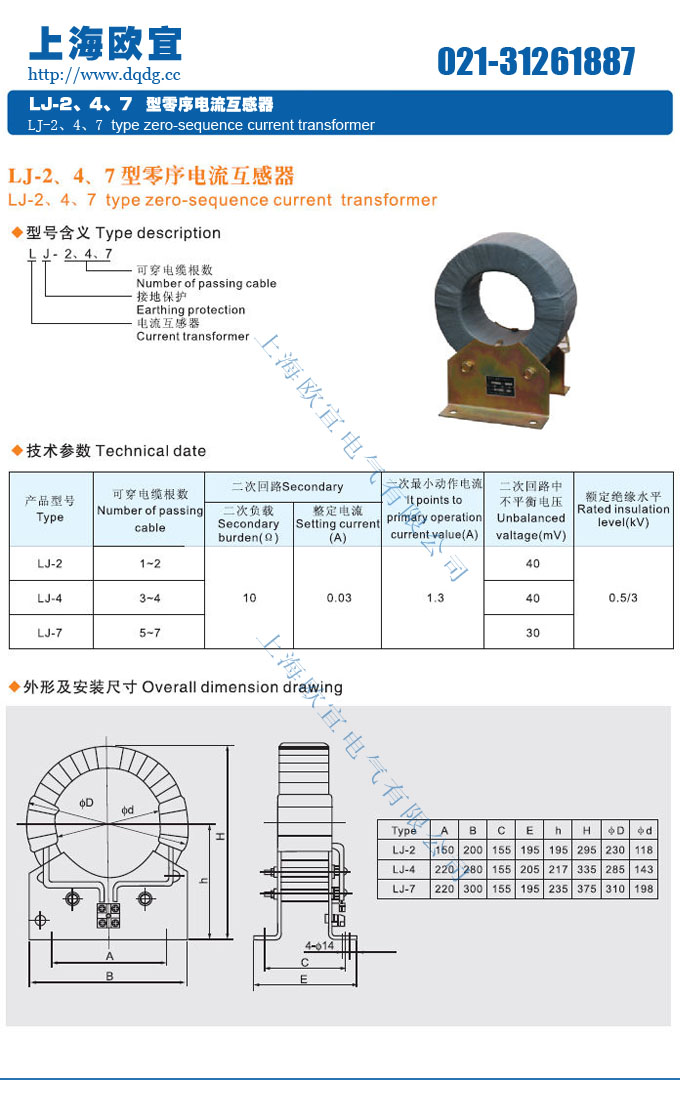 聲明:這里是產(chǎn)品的接線圖、變比、參數(shù)、精度、準確級、保護級、作用原理、外形尺寸等詳細參數(shù)頁面。本頁LJ-1,LJ-2,LJ-4零序電流互感器的信息僅供參考,如有改動不另行通知。訂購前請來電咨詢,我們有專業(yè)人士為您選型。 另外可根據(jù)客戶需求,訂制非標產(chǎn)品。