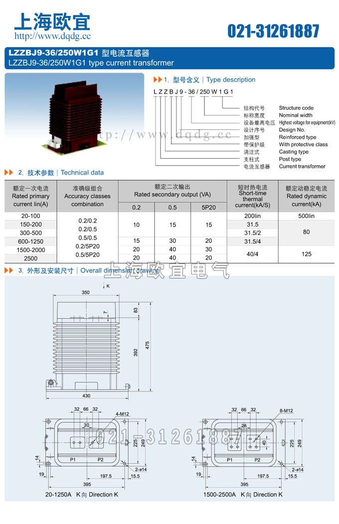 聲明:這里是產(chǎn)品的接線圖、變比、參數(shù)、精度、準(zhǔn)確級(jí)、保護(hù)級(jí)、作用原理、外形尺寸等詳細(xì)參數(shù)頁(yè)面。本頁(yè)LZZBJ9-36/250W1G1電流互感器的信息僅供參考,如有改動(dòng)不另行通知。訂購(gòu)前請(qǐng)來(lái)電咨詢(xún),我們有專(zhuān)業(yè)人士為您選型。 另外可根據(jù)客戶(hù)需求,訂制非標(biāo)產(chǎn)品。